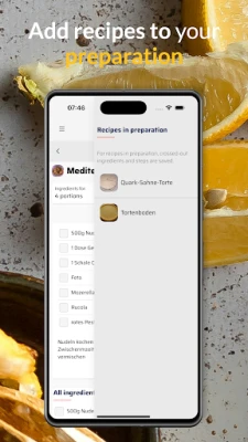 Simply add the ingredients from the recipes to the shopping list and cross things off the list that you have already bought in real time. This way you always have an overview of what you still need to buy. And if you're shopping with the family, everyone can see in real time what everyone else has already bought.