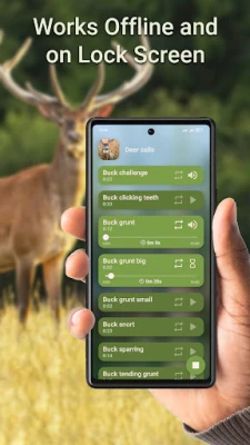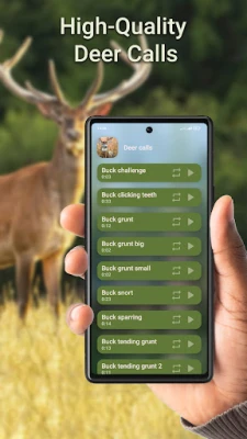 - Quality deer calls - Multiple playing - Delay setting for each call - Works offline - Works with locked screen