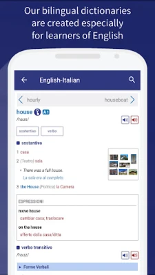 • Search for the word you want in either English or Italian, and switch dictionary sides with one tap