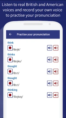 • Listen to the high-quality, real-voice audio pronunciation of the English words in both British and American English