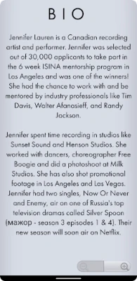 All of the latest updates and information on Jennifer Lauren available here. Keep up to date with Jennifer Lauren and her music in the app. Listen to her music and enjoy her music right from the palm of your hand.