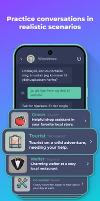 Practice real-world conversations with your AI tutor — order a meal at a restaurant, chat with a friend about your day at work, or get complex grammar rules explained in a simple way. Plus, receive instant grammar feedback to improve your confidence in every conversation.