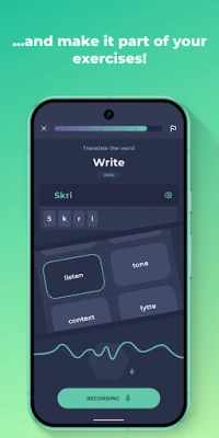Enhance your language skills with interactive exercises designed to improve reading, writing, listening, and speaking. Take control of your learning by customizing exercises with your own words and selecting the skills you want to improve.