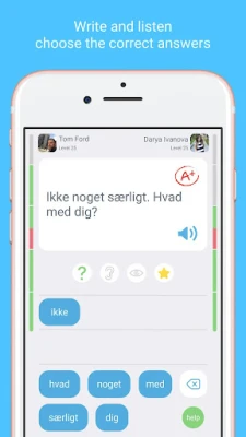 Playing online is also one of the best ways to test your knowledge of Danish vocabulary. Play in duo mode with your friends or other players. The app features useful functions that enable you to do exercises and take tests, or only study what you have gotten wrong. You can also skip the Danish for Beginners course and move to more advanced Danish lessons.