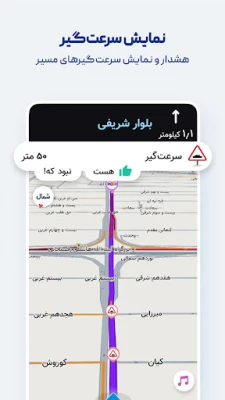 Using GPS and real-time traffic data—just like leading international navigation apps—Neshan suggests the fastest, least congested routes, and alerts you along the way when you are approaching speed cameras or police checkpoints.